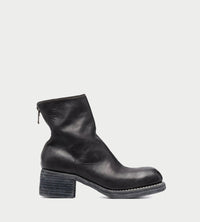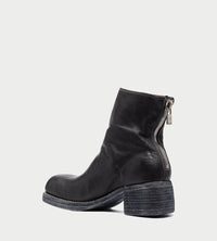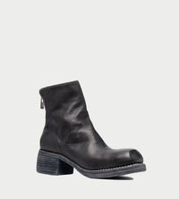 Back zip full grain leather boots with double stacked heel and square toe box. Each boot is piece dyed resulting in beautiful tonal variations.