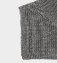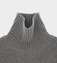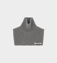 Chunky ribbed turtle-neck alpaca blend neck warmer. Kimhekim label attached at bottom. Strings attached under the arm. One size fit all.
