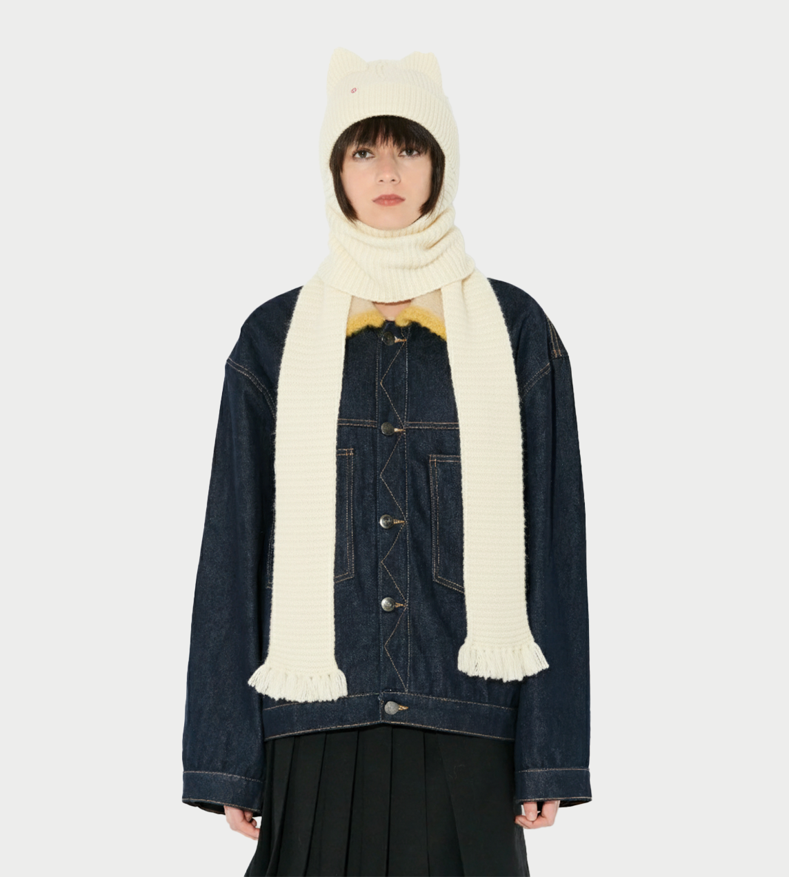 Alpaca Chunky Ears Beanie Scarf Ecru