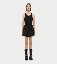 This tailored wrap skort is converted from a classic blazer. Finished with traditional suiting details, including front flap pockets and a button placket. The mid-rise wool skirt has a detachable inner short with flat knit elastic waistband, for a convertible look.