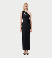 A thigh-high side slit introduces a hint of daring sensuality, while the clean lines and asymmetrical hem maintain a refined, architectural feel. Unlined and pull-on in construction, the gown offers effortless wearability without compromising on sophistication. Made in France, it embodies Coperni’s commitment to contemporary femininity and high-fashion craftsmanship.