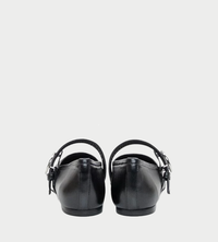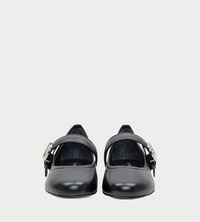 Mary Jane ballet flats crafted from supple black leather with a round toe silhouette and thick supportive straps. They fasten with a statement C-logo buckle.