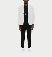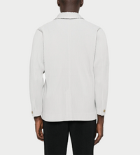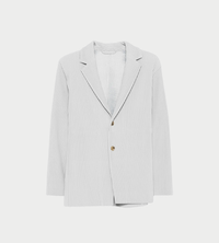A jacket that dries quickly, which is unique to polyester material, and is portable and lightweight. A three-dimensional form is achieved by further sewing after pleating.