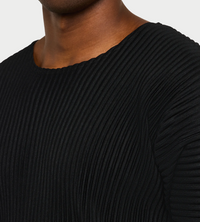 Basic crewneck, short sleeved pleated t-shirt.