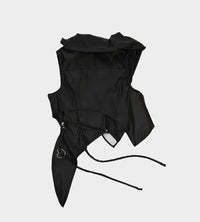Deconstructed vest with Velcro closure, and signature loose strap details. True to size. Collar can be raised up to resemble more of a funnel neck.