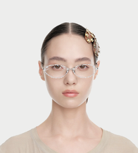 Oval-frame glasses in polished metal with ripple-effect crystal embellishments along the rims. Clear lenses, adjustable nose pads and subtle YVMIN branding on the temple convey understated luxury.