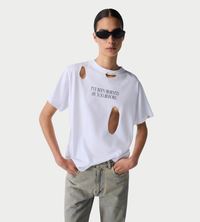 Part of an exclusive collaboration, this T-shirt has a relaxed, boxy fit with a classic crew neckline. The slogan pays homage to the charismatic three-armed golden candelabra from the classic ©Disney tale, who appears to have left his mark: the T-shirt features holes and faux scorch marks as a stylistic expression of burning desire done the Disney way.