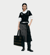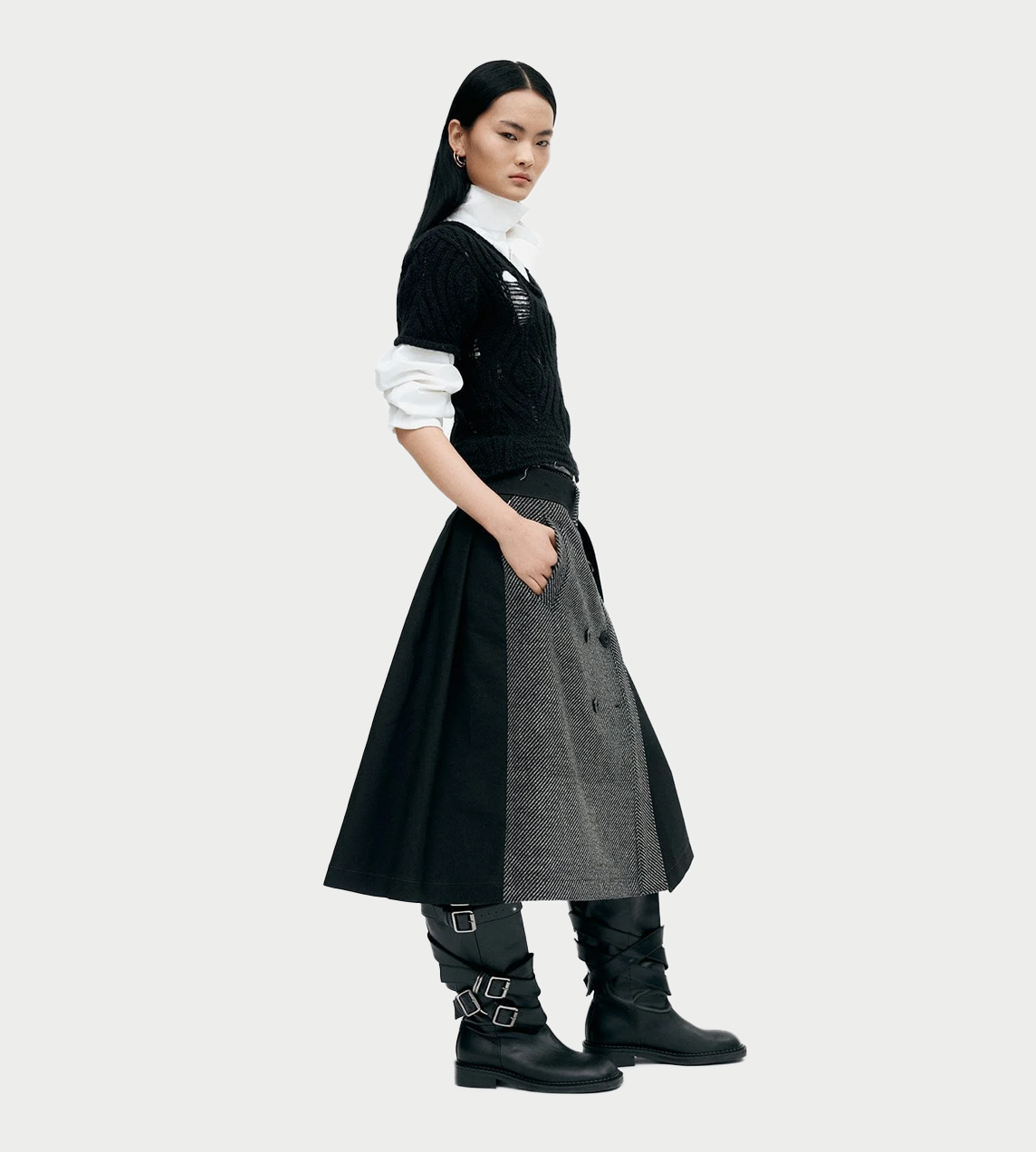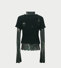 - Top featuring a layered design with distressed wool-blend knit and printed long sleeves.