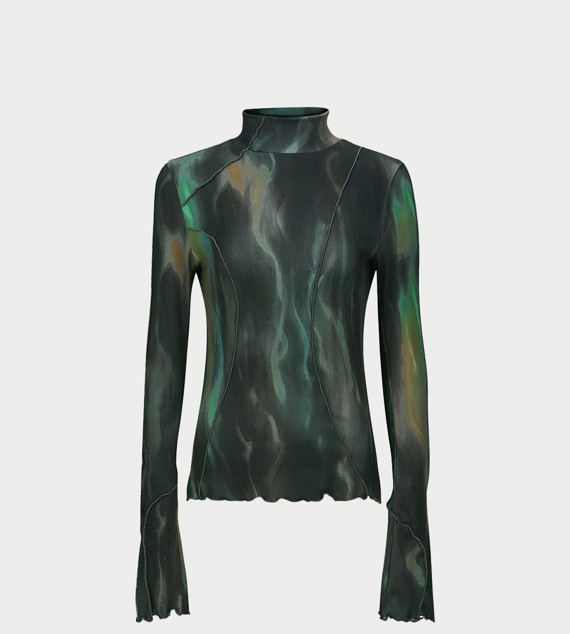 - Long sleeves top featuring a full-front graphic and lettuce stitch detailing.