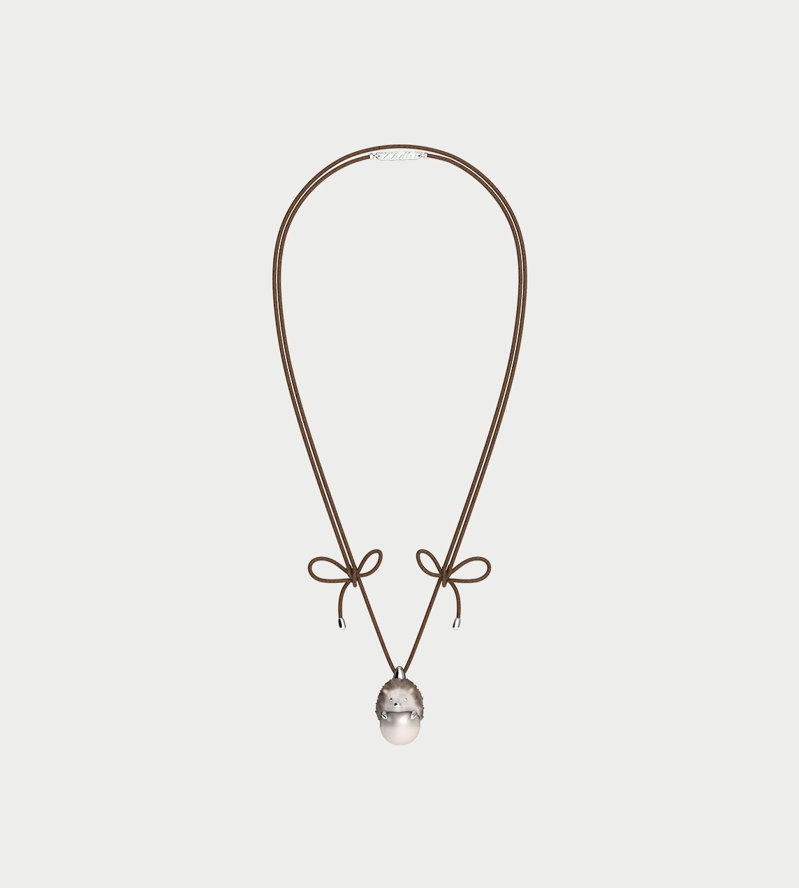 Ceramic hedgehog pendant necklace with a leather strap. Adjustable strap. With pearl detail.