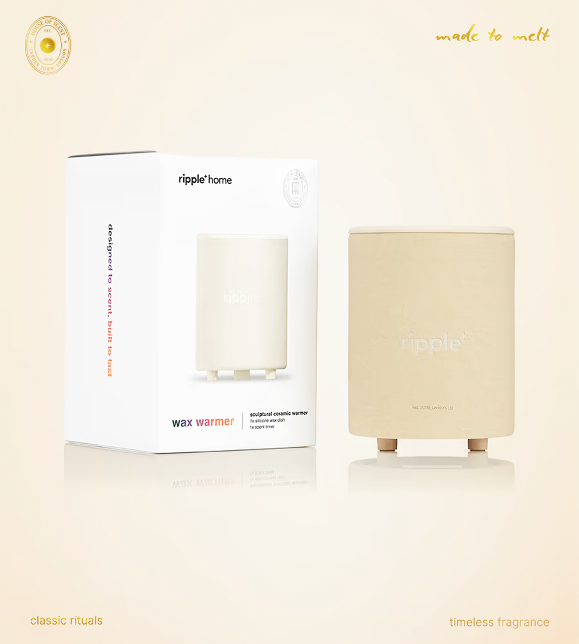 The ripple⁺ wax warmer is your flame-free fragrance companion, crafted to release the most beautiful scents into your space. A sculptural home object intended to melt away the bad energy & bring your home a new level of scent.