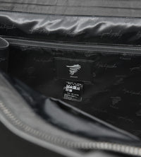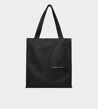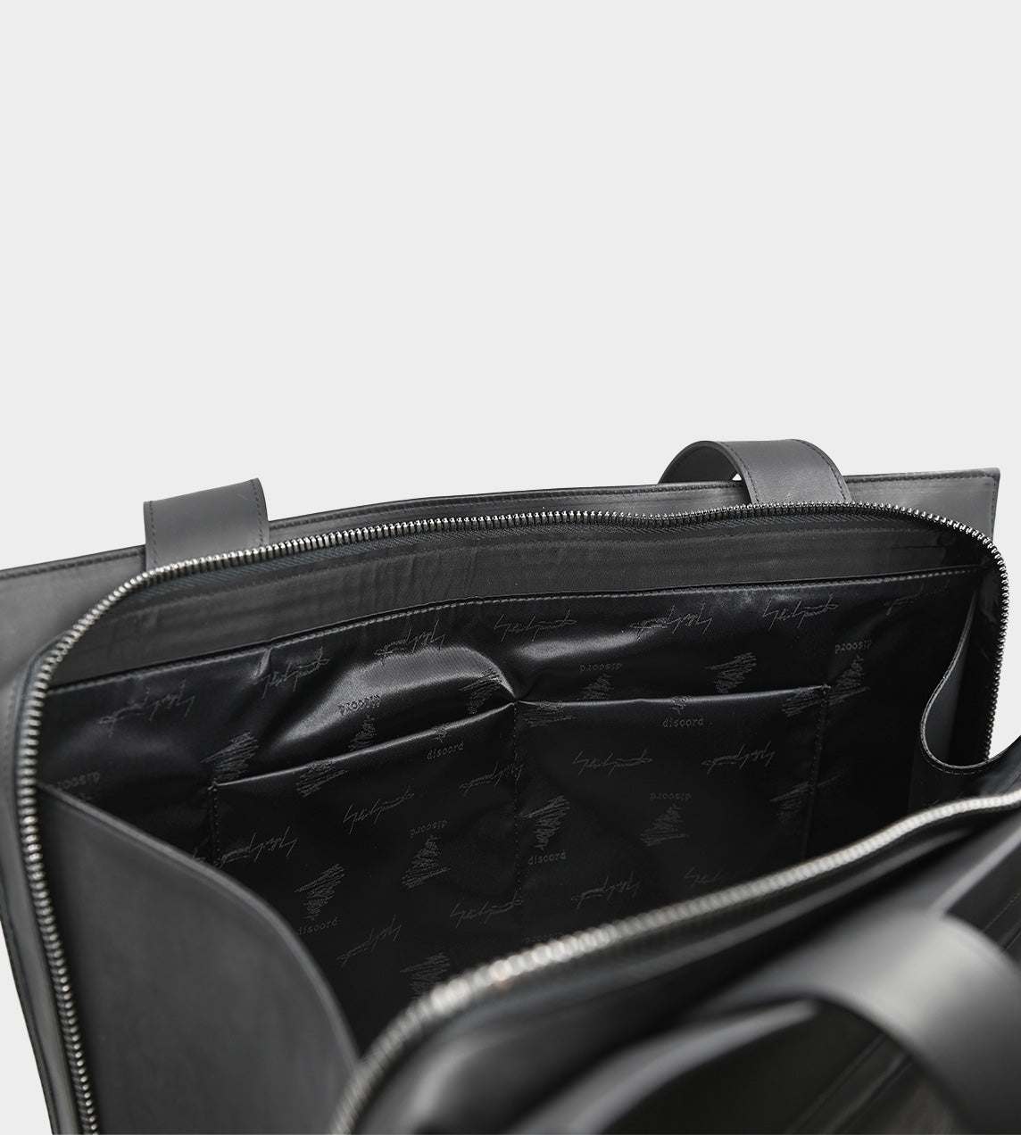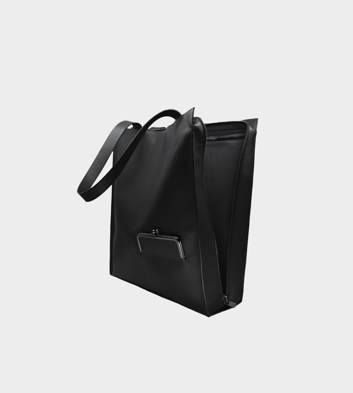 This tote bag combines sleek design with practical functionality. It features a secure zip closure and iconic exterior pocket with a clasp for easy access.