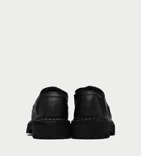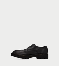 Classic Guidi black derby shoe in the finest horse leather. These oxfords feature a round toe, a low block heel, and a lace-up front closure. Treaded Vibram® rubber sole.