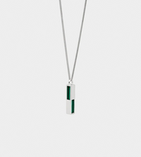 The Cube Pendant Malachite is a rectangular pendant with a round Malachite set inside. The pendant is made of solid 925 sterling silver and comes with a delicate rolo