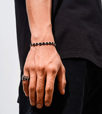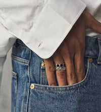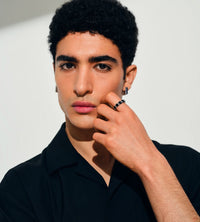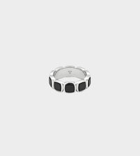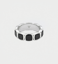 The Cushion Band Polished Onyx is an exclusive band ring with custom hand cut and bezel set polished Onyx all around the band to form the signature Tom Wood cushion