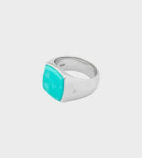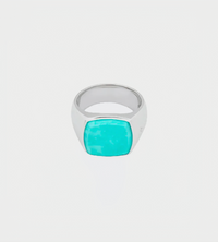 The Cushion Black Bright Turquoise Stone has a modern and minimalistic feel, cast in 925 sterling silver with a bezel set Turquoise on top.