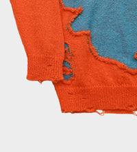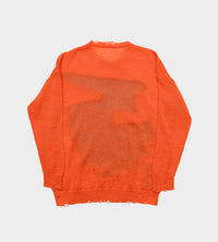 Knit acrylic- and mohair-blend sweater. Distressing throughout. Rib-knit crewneck, hem, and armscyes. Intarsia graphic at front. Signature white stitching at back collar.