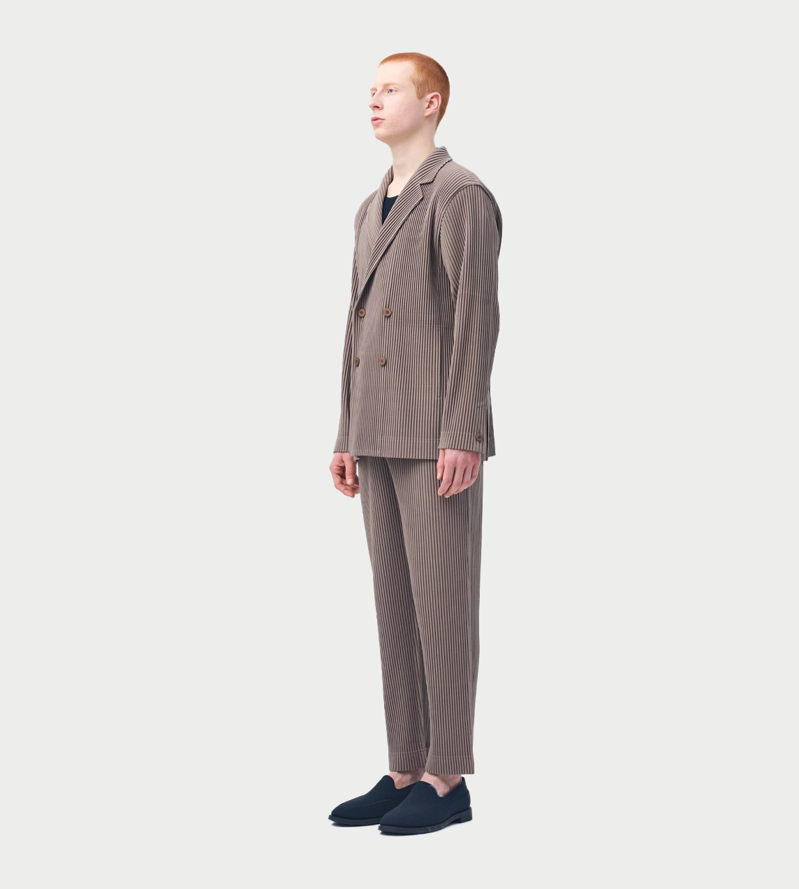 TAILORED PLEATS 1 offers classic and functional suiting styles with the practical properties of pleated fabric; washability, portability and fast-drying.