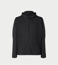 This zippered parka is available in chic color tones. It is characterized by its double-layered sleeves, designed so you can insert your thumbs through them like thumbholes. When worn under a coat or jacket with the sleeves showing, it creates a layered style that highlights the pleated fabric's essence. It has pockets on both sides.