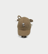 A miniature light brown fabric hat reimagined as a sculptural hair accessory.