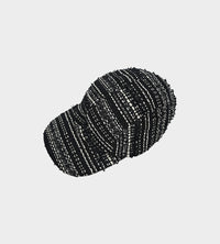 Cream and blank fancy tweed baseball cap with cotton lining, and elasticated back for a snug fit.