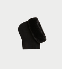 This ribbed wool and cashmere hood, trimmed with faux fur, introduces a new piece imagined by Harris Reed for Maison Nina Ricci. It combines warmth, comfort, and elegance, while adding a bold fashion twist.