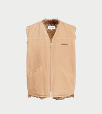 A statement in duality, this reversible gilet offers two distinctive aesthetics in one. The structured cotton side brings a refined, workwear-inspired edge, while the faux fur reverse introduces tactile warmth. Designed for versatility, it’s finished with a zip closure and welt pockets, making it a staple for transitional dressing.