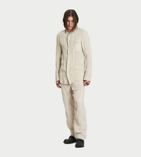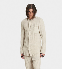 Masnada classic round collar shirt in flint color. external French seams, stand collar, garment treats for unique aspect.