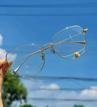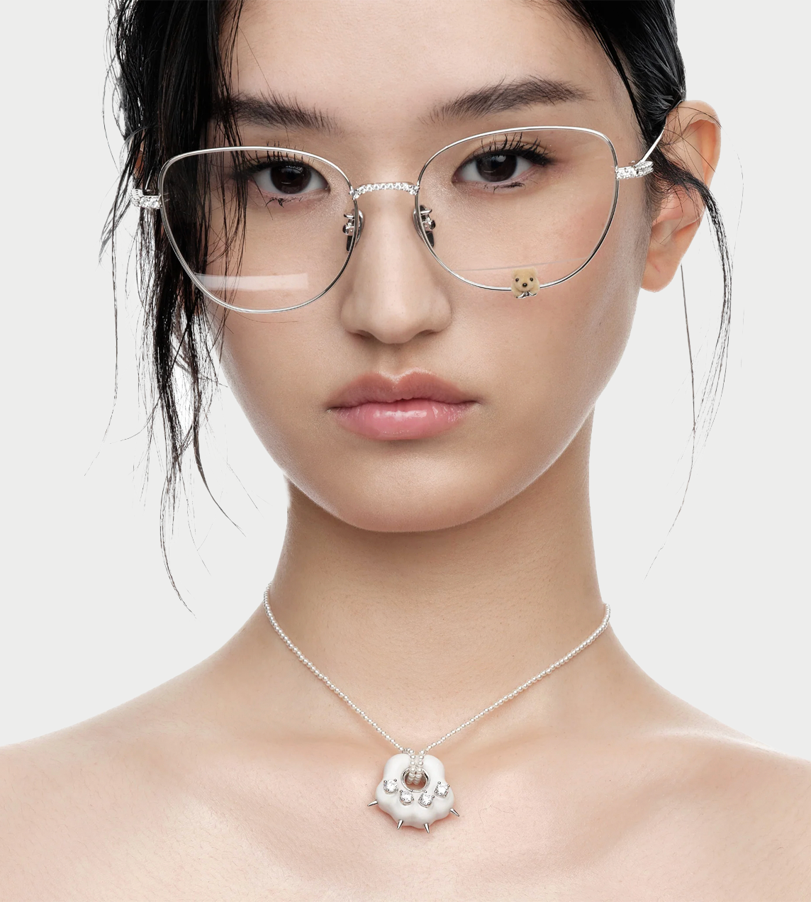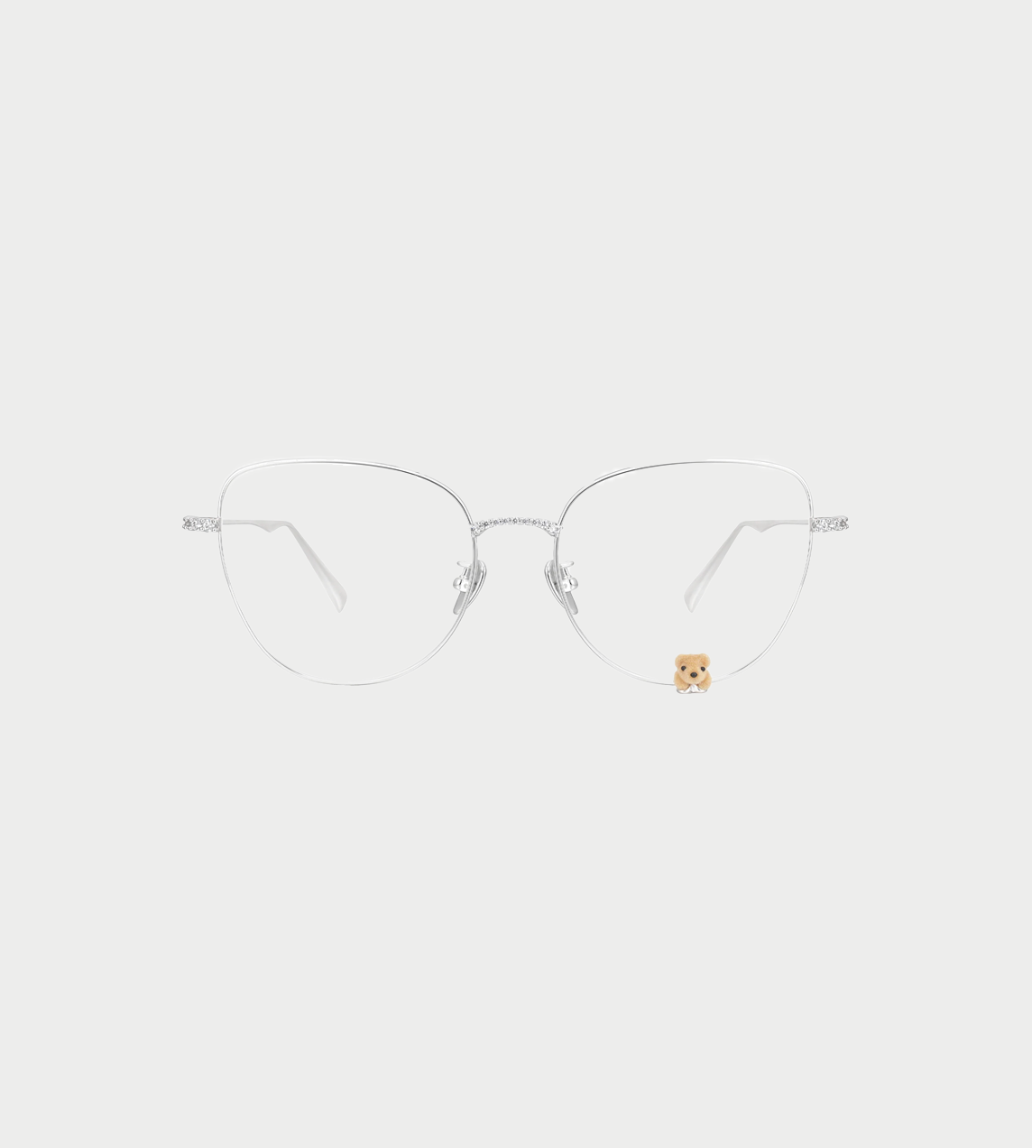 Yvmin light-weighted flocked bear decorated glasses in silver color. Crystal detail on the side of glasses.