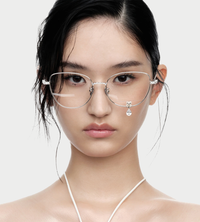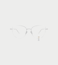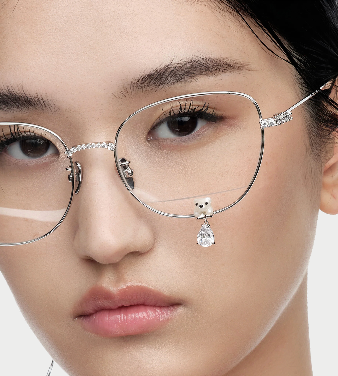 Yvmin light-weighted pearl color flocked bear and gemstone pendant decorated glasses in silver color. Crystal detail on the side of glasses.