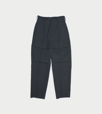 Front pocket relaxed work pants in black color. Elastic waistband. Belt loops. Front cargo pockets.