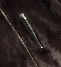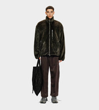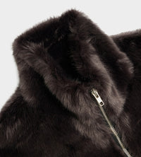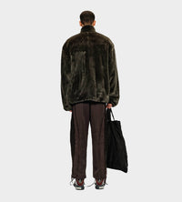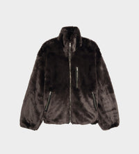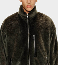Fully lined oversized track jacket in a modacrylic faux fur. Featuring a two-way zip closure, funnel neck collar, and a vertical zip pocket at chest.