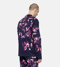 Brushed cotton shirt style jacket with placed orchid floral print. This jacket features 2 hidden pockets just above the hem for the hands, and 1 patch pocket on the left