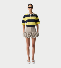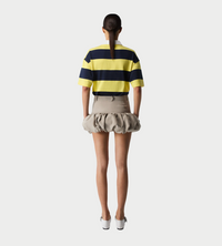 Designed to be worn on the hips, this low-slung miniskirt fuses a classic flat-fronted waist panel with an exuberant bubble-like hem, which is also pocketed on both sides.