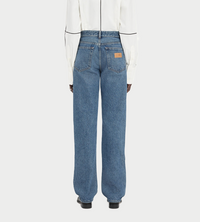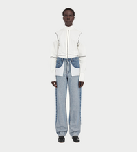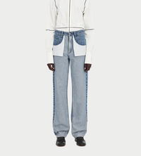 These straight-leg jeans rethink denim architecture by bringing hidden elements to the forefront. The inverted pocket detail and contrast-wash denim panels lend a deconstructed, layered effect. At the back, the Maison's discreet white stitch line and numeric artwork underscores its iconic design signature.
