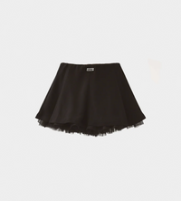 Avavav mini skirt features layers of tulle for an extended A-line silhouette. Detailed with Avavav metal logo pin at front. Crafted in three layers of tulle and overskirt made of fluid georgette fabric. Cut to a regular fit
