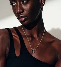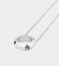 The Kimberlitt pendant is a bold and minimalistic necklace, with soft oceanic curves and contrasting sharp cut-outs that reminiscent of mines where diamonds and precious stones are found. Inspired