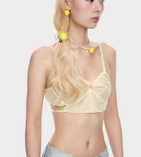 Balancing playful realism with bold proportion, the smooth yellow surface contrasts against the reflective metal detailing. Designed to hold firmly while introducing a vivid pop of color and sculptural presence to everyday styling.