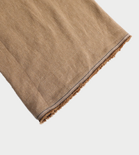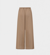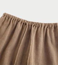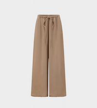 Crafted from lightweight linen with a subtle interwoven texture, these pants feature a loose-fitting straight silhouette and an adjustable drawstring waist. The light coffee tone enhances their natural drape, offering