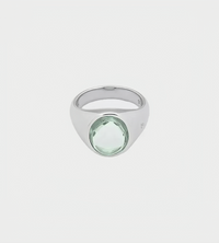 The Lizzie Ring Green Quartz is a medium sized signet ring made of high quality 925 sterling silver, plated in white rhodium to strengthen the surface and to prevent