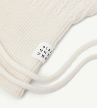 Rib-knit balaclava with MM6 numeric logo motif, featuring a clean face opening and a soft stretch wool-blend construction for a comfortable close fit.