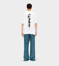 Short sleeve t-shirt in a silken cotton jersey. Featuring seasonal logo on the front and "Falling Foliage" back print.