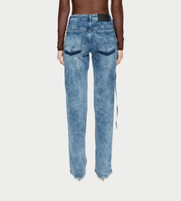 The Ottolinger Loose Fit Jeans in Blue Wash offer a contemporary take on classic denim, combining relaxed tailoring with avant-garde detailing. Crafted from a stretch denim blend (93% cotton, 5% polyester, 2% elastane), these jeans provide both comfort and structure.