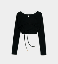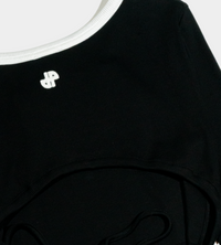 Black organic cotton long sleeve t-shirt. Ribbed fabric. Crewneck. Contrast collar and cuffs. Backless. Contrast JP embroidery at center back.