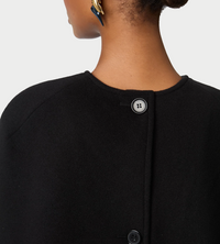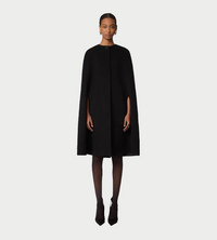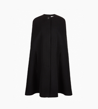 Crafted from black virgin wool and cashmere, this long cape by Nina Ricci stands out for its clean lines and generous volume. Its refined minimalism is enhanced by a hidden front placket and welt pockets that blend function with elegance.