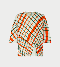 Windswept plaid short sleeve tee. This round-neck, short-sleeved top has an impressive pattern composed by capturing the moment when the plaid-patterned fabric flutters in the wind. It expresses the fun, wonder, and spontaneity of the plaid pattern being naturally distorted by the force of the wind.