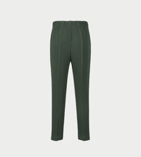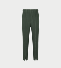 Monthly color trousers in dark green. These straight pants are available in clear color tones. They have pockets on both sides, front slits, and an inner draw cord. They have a button-fly design.
