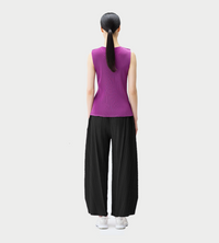 These deformed pants are made from thick material. They are characterized by their simple silhouette that is easy to style in outfits. They have pockets on both sides.