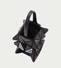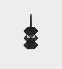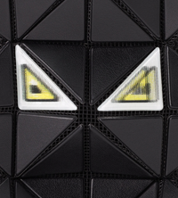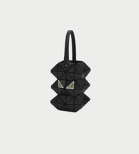 This mini handbag can transform into a charming cat-like shape, complete with triangular ears and a tail. It is characterized by its eyes that move side to side, made using lenticular material, and a handle with a tail shape. It can be used as a décor item, a bag, or a charm.