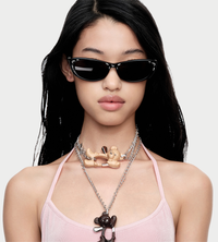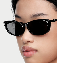Yvmin light-weighted metal inlaid sunglasses in black color. Silver metal detail on the side of glasses.